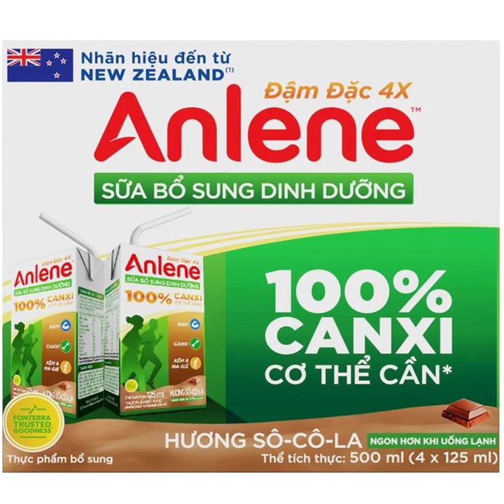 Sữa Anlene đậm đặc 4X hương Socola hộp 125ml sản phẩm bổ sung canxi cho người lớn và phụ nữ sau sinh. Canxi là một khoáng chất quan trọng giúp xương khỏe mạnh, là nguyên tố quan trọng trong cơ thể, trong đó 99% tồn tại trong xương, răng, móng tay, chân. Ở mỗi giai đoạn phát triển đều cần canxi, người lớn trưởng thành, người cao tuổi, đặc biệt là phụ nữ sau khi sinh. Khi mang thai, canxi của người mẹ bị rút ra để truyền qua nhau thai để cung cấp cho con cấu tạo xương, răng cũng như cung cấp dưỡng chất để con hoàn thiện não bộ. Vì vậy, phụ nữ sau mỗi lần sinh nở và đặc biệt các mẹ đang cho con bú rất dễ thiếu hụt canxi dẫn đến loãng xương và gặp nhiều triệu chứng như đau lưng, đau cơ bắp, rụng tóc...nếu như không được cung cấp canxi đầy đủ.