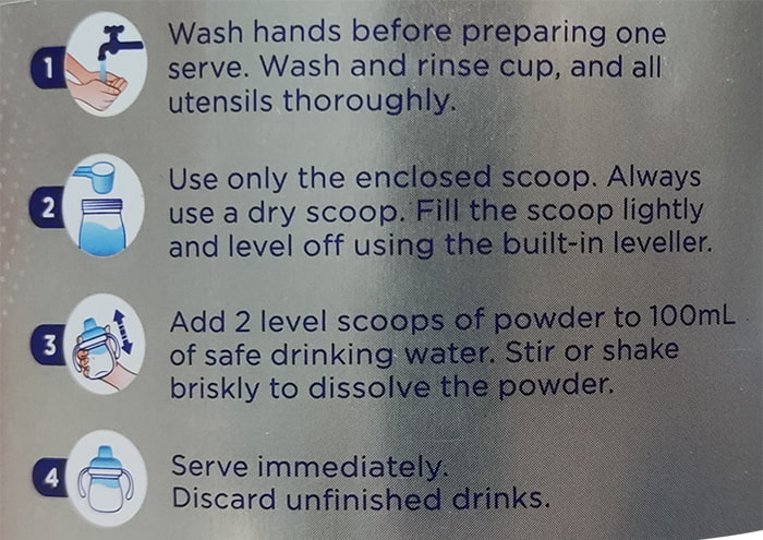 Hướng dẫn cách pha sữa Aptamil Úc: Pha 1 muỗng với 50ml nước.