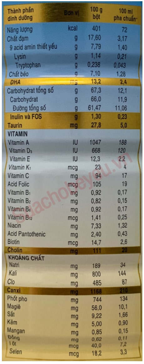 Protein, canxi và vitamin D là những dưỡng chất nòng cốt thúc đẩy sự tăng trưởng thể chất của trẻ. Theo thống kê, ở tuổi mẫu giáo trẻ cần khoảng 600mg canxi và 600 IU vitamin D mỗi ngày, không nạp đủ lượng này sẽ khiến hệ xương khó phát triển, dễ thấp còi, không đạt chiều cao chuẩn của trẻ. Abbott Grow Gold 6+ với hàm lượng Vitamin D và phốt pho cao theo chuẩn FDA Hoa Kỳ, nay tăng thêm 20% hàm lượng Canxi sẽ tiếp sức cho con tăng trưởng thêm chiều cao trong giai đoạn quan trọng này.