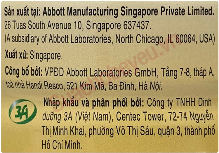 Sản xuất tại: Abbott Manufacturing Singapore Private Limited.