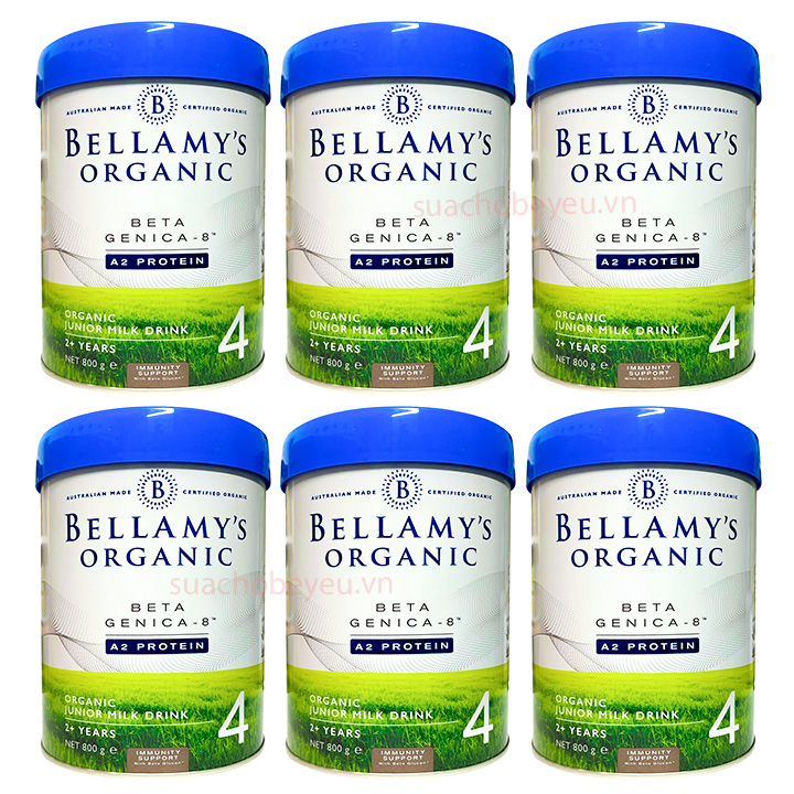 Sữa Bellamy’s Organic A2 số 4 cho bé từ 2 tuổi là sữa công thức cao cấp, giàu chất dinh dưỡng được làm từ sữa nguyên kem hữu cơ đạm A2. Thành phần chứa axit béo thiết yếu Omega 3 DHA (từ vi tảo), công thức synbiotic cao cấp gồm Probiotic và Prebiotics (GOS & FOS) cũng như 12 loại vitamin và khoáng chất thiết yếu giúp tăng cường hệ miễn dịch và sự phát triển của trẻ