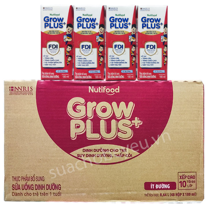 Sữa bột pha sẵn Nuti Grow Plus + Đỏ Ít đường hộp 180ml thuộc sản phẩm của NutiFood