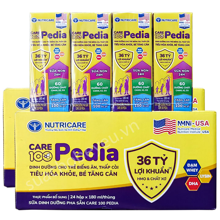 Sữa nước Care 100 Pedia còn cung cấp hàm lượng phát triển hệ xương gồm canxi, photpho, vitamin D3 giúp đánh bay thấp còi, bé cao lớn, bắt kịp đà tăng trưởng. Các nghiên cứu lâm sàng của Viện Y học Ứng dụng Việt Nam đã chứng minh chỉ sau 4 tháng đồng hành cùng Care 100 Pedia mẹ sẽ bất ngờ khi bé "cán mốc" những chỉ số "ao ước" về cân nặng, chiều cao và tình trạng dinh dưỡng như tăng 1,5 kg và hiệu quả tăng cân tốt hơn 36,4% so với dùng sữa thông thường, tăng 1,5 kg và hiệu quả tăng cân tốt hơn 36,4% so với dùng sữa thông thường.