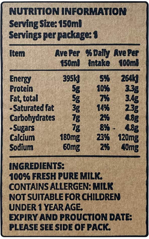 Thông tin thành phần dinh dưỡng Sữa tươi nguyên kem Nature's Farm Úc hộp 150ml