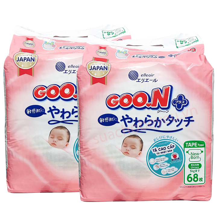 Tã dán sơ sinh GOON Mommy Kiss NB 66 miếng, trẻ < 5kg. Lần đầu tiên ôm ấp thiên thần bé nhỏ trong vòng tay, mẹ đã tin rằng làm mẹ thực sự là một điều vĩ đại. Mẹ luôn tự nhủ mình có thể làm được tất cả vì con. Mẹ lo cho con từng bữa ăn, giấc ngủ, chăm sóc và bảo vệ làn da mỏng manh non nớt của con. Và mẹ an tâm lựa chọn tã giấy GOON cho thiên thần của mẹ. Tã giấy GOON mềm mại thấm hút tốt sẽ chăm sóc cho giấc ngủ của con được trọn vẹn. Có GOON cùng đồng hành, hành trang làm mẹ chắc chắn sẽ nhẹ nhàng hơn.