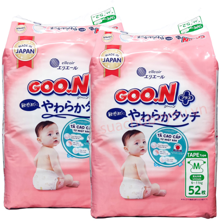 Tã dán GOON Plus size M 52 miếng cho trẻ từ 6-11kg. Lần đầu tiên ôm ấp thiên thần bé nhỏ trong vòng tay, mẹ đã tin rằng làm mẹ thực sự là một điều vĩ đại. Mẹ luôn tự nhủ mình có thể làm được tất cả vì con. Mẹ lo cho con từng bữa ăn, giấc ngủ, chăm sóc và bảo vệ làn da mỏng manh non nớt của con. Và mẹ an tâm lựa chọn tã giấy GOON cho thiên thần của mẹ. Tã giấy GOON mềm mại thấm hút tốt sẽ chăm sóc cho giấc ngủ của con được trọn vẹn. Có GOON cùng đồng hành, hành trang làm mẹ chắc chắn sẽ nhẹ nhàng hơn.