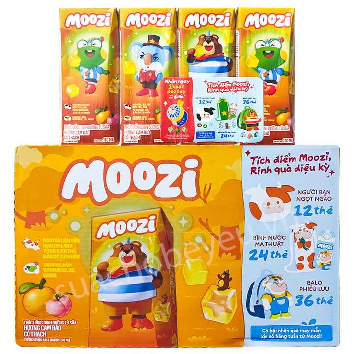 Thùng sữa tươi thạch Moozi hương cam đào hộp 170ml